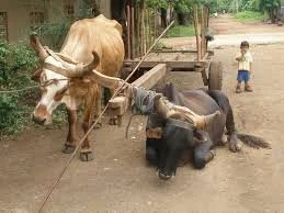 The gif is pretty spot on. The thing around the neck is the yoke. But I’d argue what’s more important is the burden behind. You don’t yoke oxen together, typically, without the intention of them carrying some sort of burden along. Now look at the following image.